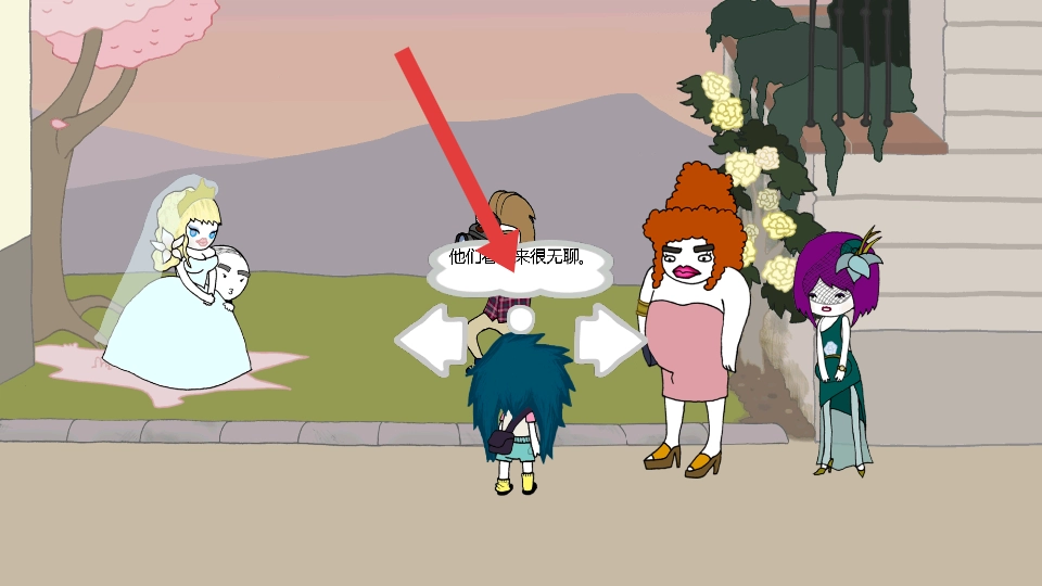3、在户外场景里,要是碰到穿着婚纱的人物或者红卷发的角色,首先触发类似“他们看起来很无聊”这样内容的对话,从而获取与场景相关联的信息。
