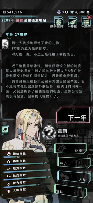 当角色年满18岁,界面上有可能会出现幽灵图标,点击该图标就能进入白鲸空间。在此空间中,你会遇到虚拟幽灵形象卢娜,与它展开对话并完成它所提出的特定任务,便可与之建立好友关系。在后续年份,角色会自动进入相关的剧情线。