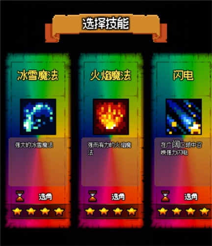 3、战斗过程中会随机生成三个技能,供玩家自由挑选。需留意,部分技能释放完毕后才能进行移动操作。
