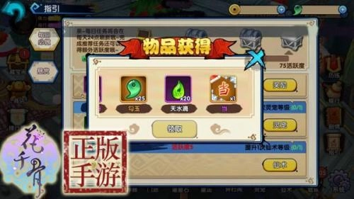 3、每日活跃度奖励。 每天积极上线,完成每日必做任务,当活跃度达到75后,领取活跃度奖励即可获得天水滴。