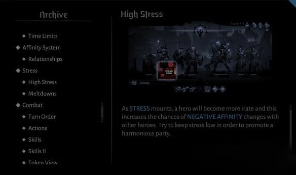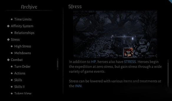 与血条相对应的是,英雄们存在压力值。战斗开启时,英雄们的压力值为0,随着各类事件的发生,英雄们会获取压力。而压力能够借助多种道具,以及在酒店接受治疗来缓解。