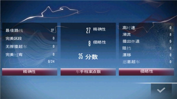 游戏设有九种比赛模式,其中涵盖标准竞速赛、淘汰赛、甩尾赛以及车手对决等。比赛目标丰富多元,像累积档案点数,或是达成干净超越、尾流跟随这类特定驾驶技巧,极大地增强了游戏的策略性与重玩价值。