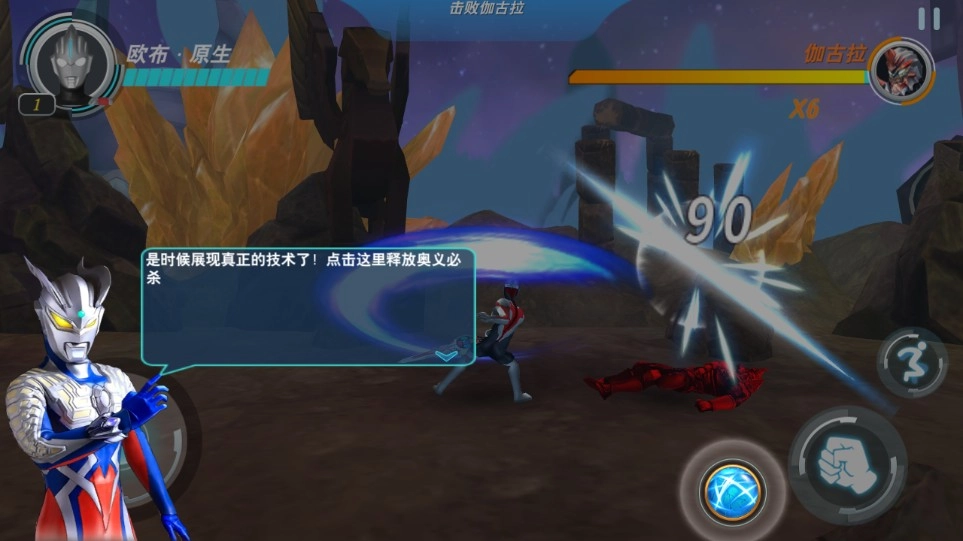 5、每位奥特曼都拥有专属的必杀技,点击即可触发。