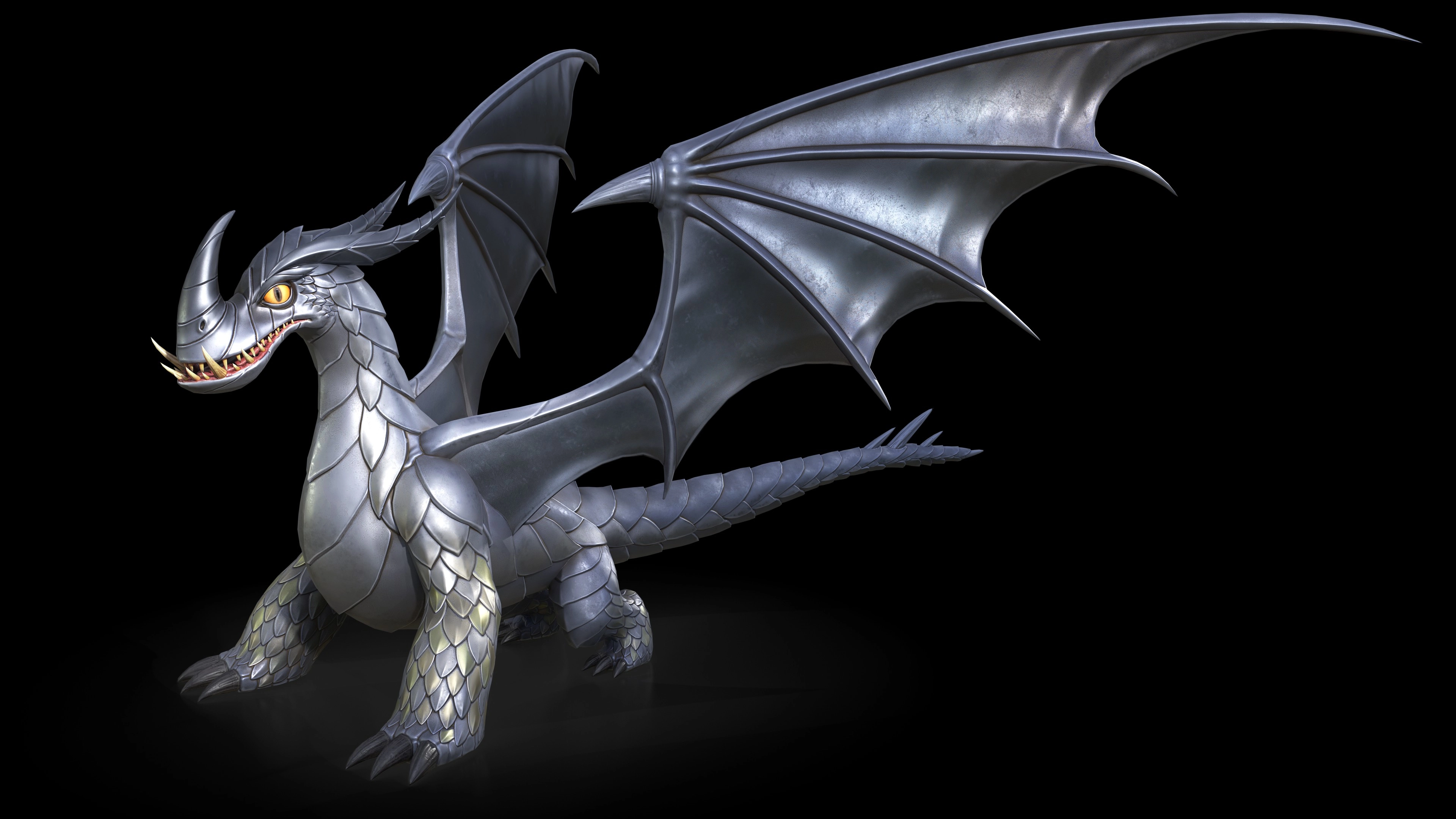 秘银飞龙属于金属龙的类别,其周身覆盖着厚实的银色金属鳞片,在光线照射下,会闪烁出稍显刺眼的银色光辉。和元素龙相比,秘银飞龙的体型更为庞大壮硕,四肢与尾巴也粗壮有力。除了凭借壮硕身躯能造成强大破坏力外,人类尤为重视它的另一个特性——情绪稳定,不容易出现暴动情况,非常适宜与人类协同作战。