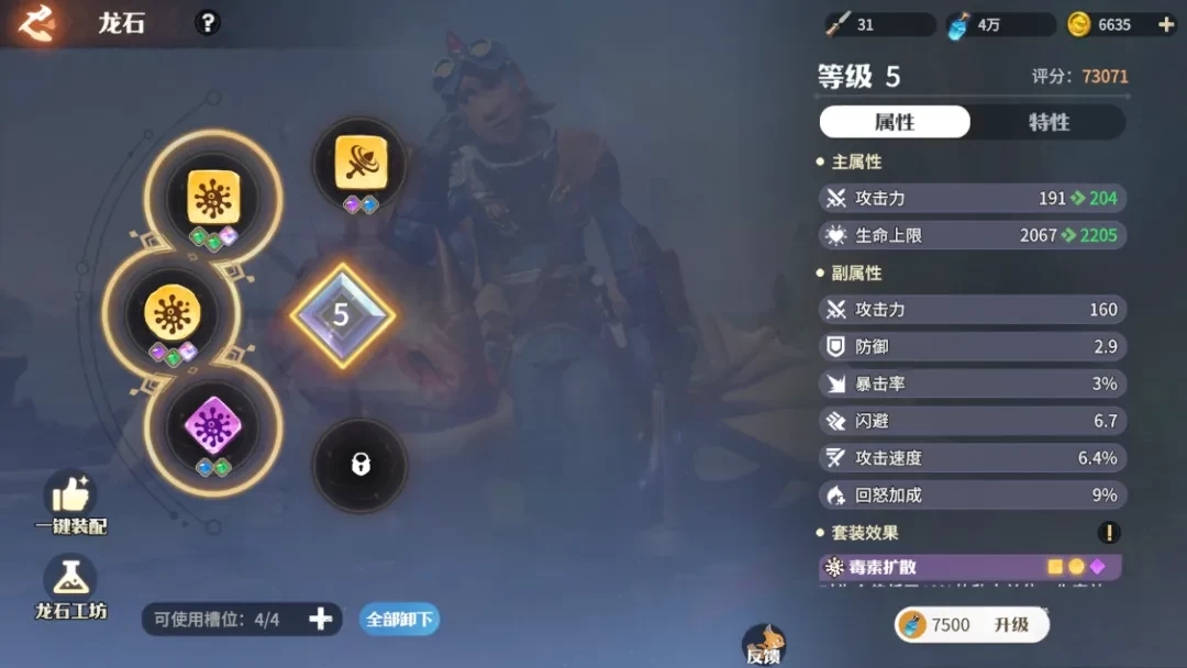 当英雄等级升至25级,便会开启龙石系统。龙石系统设有5个槽位,在英雄25级的时候,系统默认解锁其中两个槽位,而剩下的三个槽位,则分别会在英雄达到35级、45级以及55级时依次解锁。当左侧槽位成功凑齐3件套,不仅会给英雄带来极为可观的属性加成,还能提升领主的战斗能力。