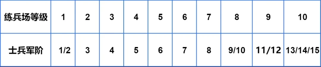 需留意的是,士兵军阶的上限和练兵场紧密相连,唯有提升练兵场的建筑等级,才能够为士兵提升军阶。