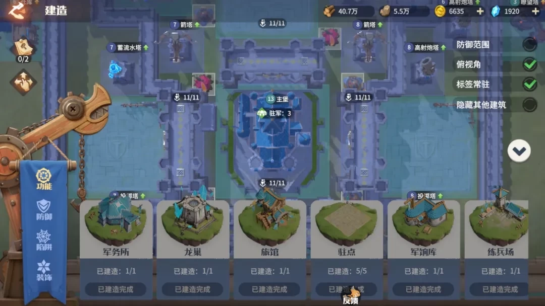 主城建筑作为核心玩法之一,无疑也是提升战力的主要途径。依据建筑的功能及实际作用,可将其归为以下三类:功能建筑、防御建筑、资源建筑。