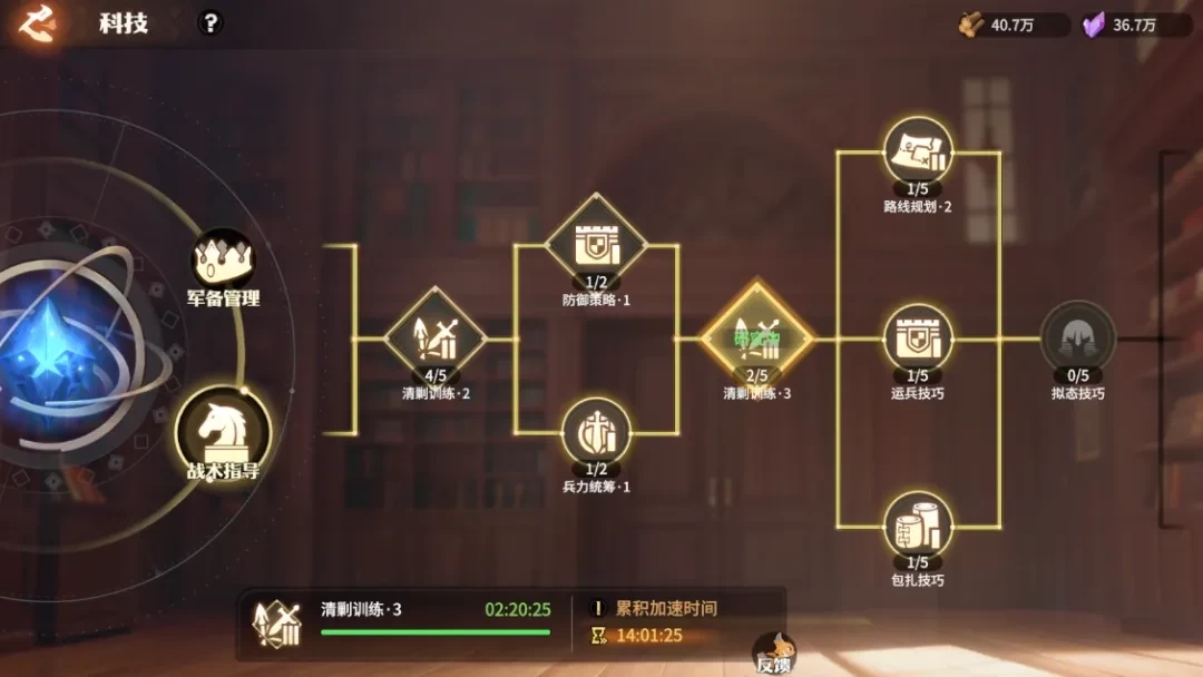 聚焦于强化军团的科技,像增加军团能够上阵的兵种数量、可上阵的英雄人数以及可上阵的人口数量等