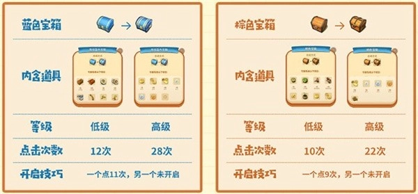 ②蓝色宝箱最多能点击12次,棕色宝箱最多能点击10次,点击完毕后箱子将会消失。