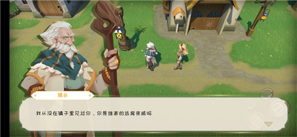第一步,进入游戏后,随意朝着某个方向走上几步,这时老村长就会发现你,从而进入剧情。这段剧情一定要仔细看,因为全部都是教学内容。