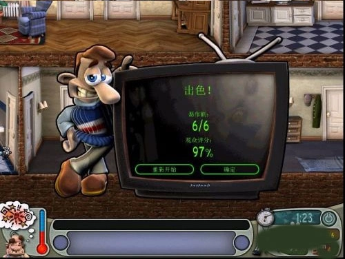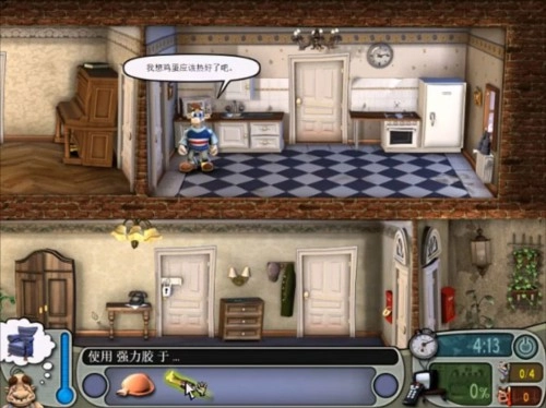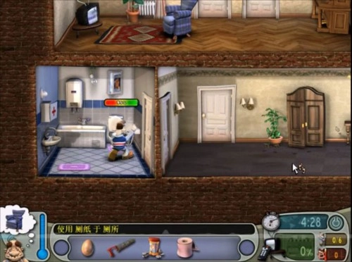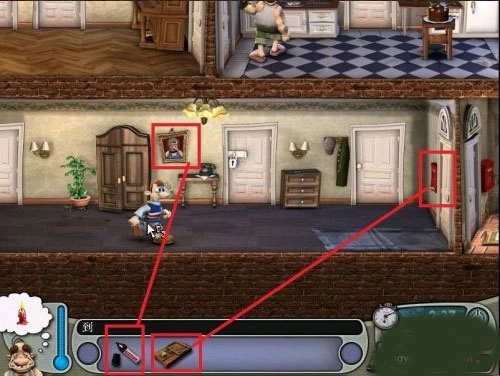 6、接下来便到了看boss“表演”的时间。一开始,鞭炮突然爆炸;紧接着,boss去开信箱,结果被捕鼠器夹到了手;随后,在往厕所跑的途中,他发现画像被涂黑了;等跑到厕所,又一脚踩到肥皂滑倒在地;紧接着,马桶居然还堵了。这一连串的状况,可把boss气得够呛。