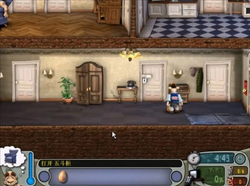 1、开启《整蛊邻居1》游戏,小男孩走进房门后,依旧在柜子的抽屉里翻找物品,在此能找到鞭炮、黑色笔以及捕鼠器。