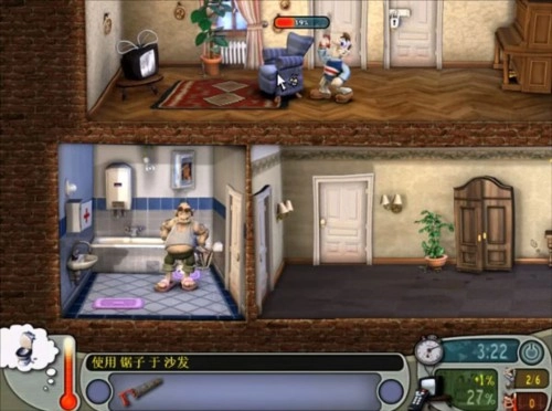7、等邻居去卫生间,这时去用电视天线,再拿锯子把沙发弄坏,完了回到门厅,就能目睹邻居被恶搞的那一刻。