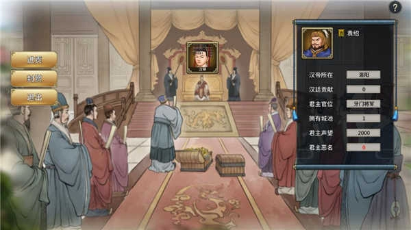 在游戏中,汉帝属于一个独立的系统。玩家能够凭借贡献来提升自身官职。需要注意的是,武将的官职不能高于君主。当玩家声望达到一定程度时,每年手下都会提醒玩家自立为王。不过,一旦自立就会增加7000恶名,还有可能遭遇众叛亲离的局面。