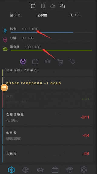 1、在游戏中,能看到体力、金币、心情、饱和度等元素。