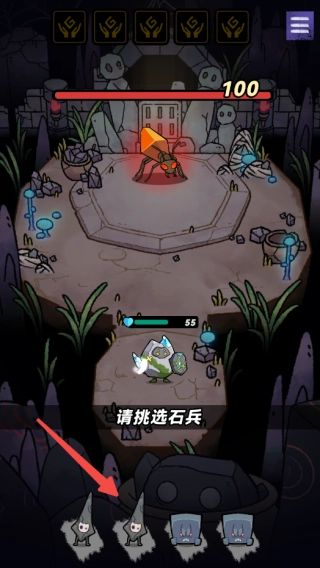 3、察觉到敌人后,便可以挑选自己的石兵。