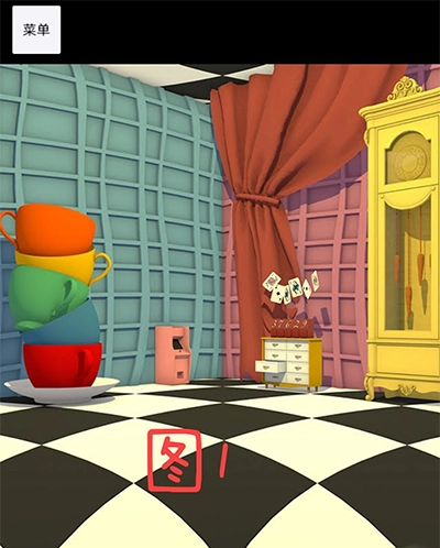 待茶话会结束后,把牌子插入茶壶,届时老鼠会跳进一个杯子里,点击该杯子,就能看到一把钥匙。