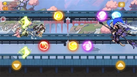 1玩家依靠滑动屏幕对角色的跳跃、滑行以及攻击动作进行操控,借此躲避障碍物与敌人。