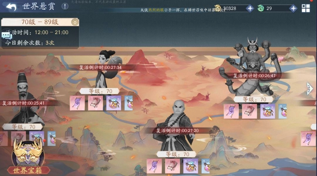 侠客是这款游戏的核心要素,游戏内的各类玩法均围绕侠客展开。像世界boss、仙术塔,以及装备试炼、侠客试炼等玩法,都需要安排侠客上阵。