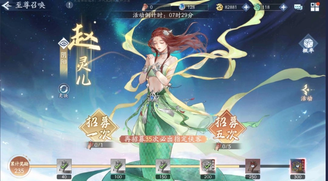 至尊招募:这是氪金大佬获取阴阳侠客的主要途径。参与此活动能够得到阴阳侠客魂器,获取魂器所需的抽取次数分别为200次和300次。活动开启后,玩家可用金龙购买至尊券(红券),每张券售价688金龙,限购15次。
