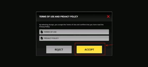 1、加载完成进入游戏后,会弹出一个弹窗,内容是一些“游戏协议”,直接点击【ACCEPT】即可。