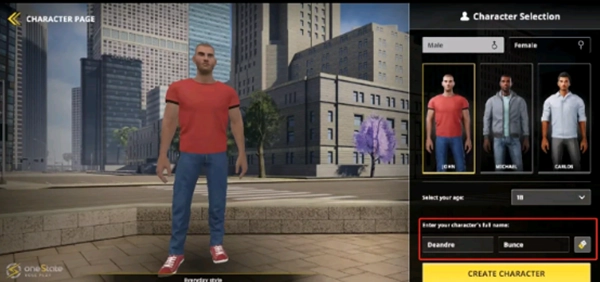 7、进入游戏后,会出现一个选人界面,玩家可在此界面选择男性或女性角色。而且,在此处修改名字,将决定玩家在游戏中的名字。