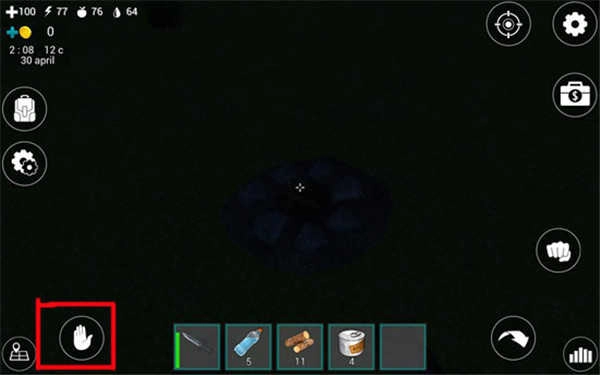 放置好的火堆起初不会燃烧,需对准火堆,点击屏幕左下角的“手掌”按钮来引燃火堆。