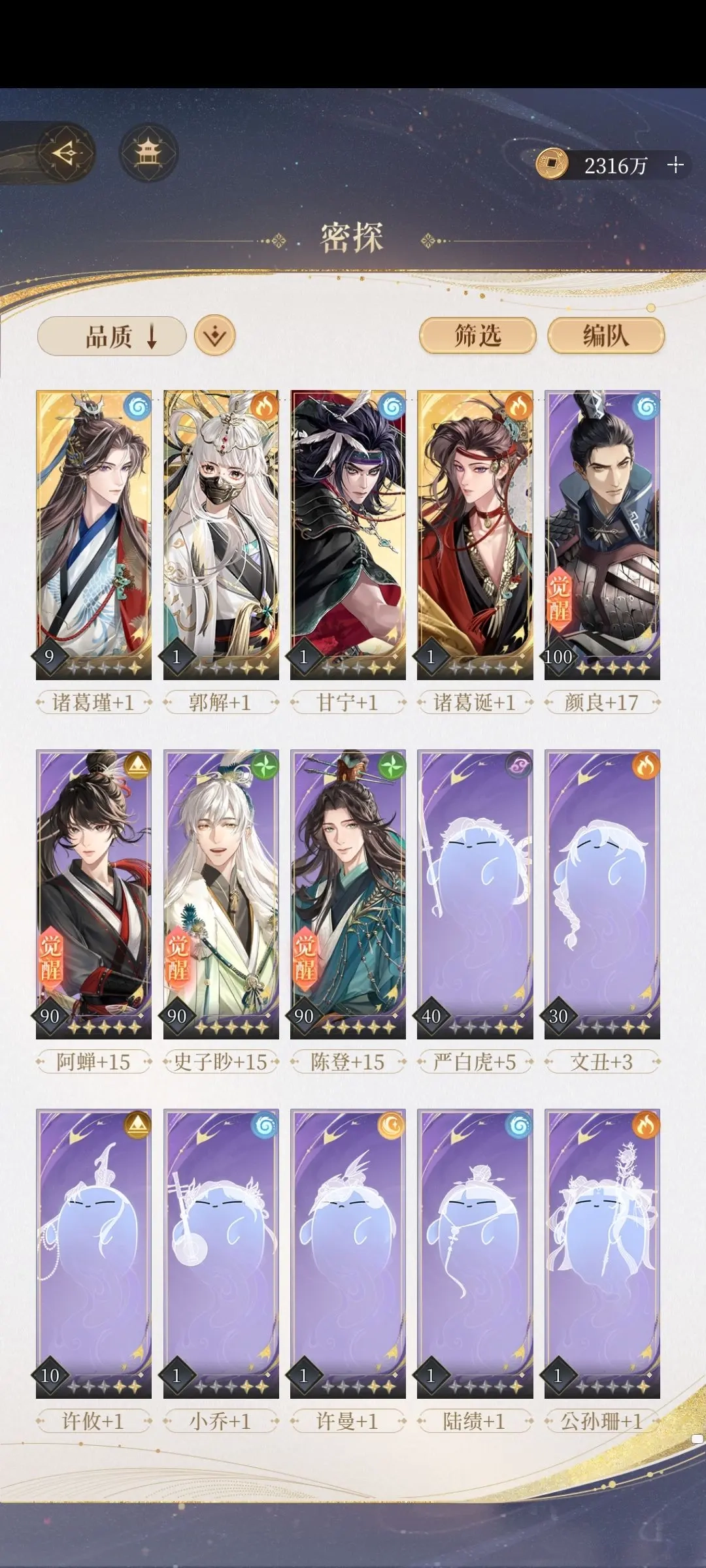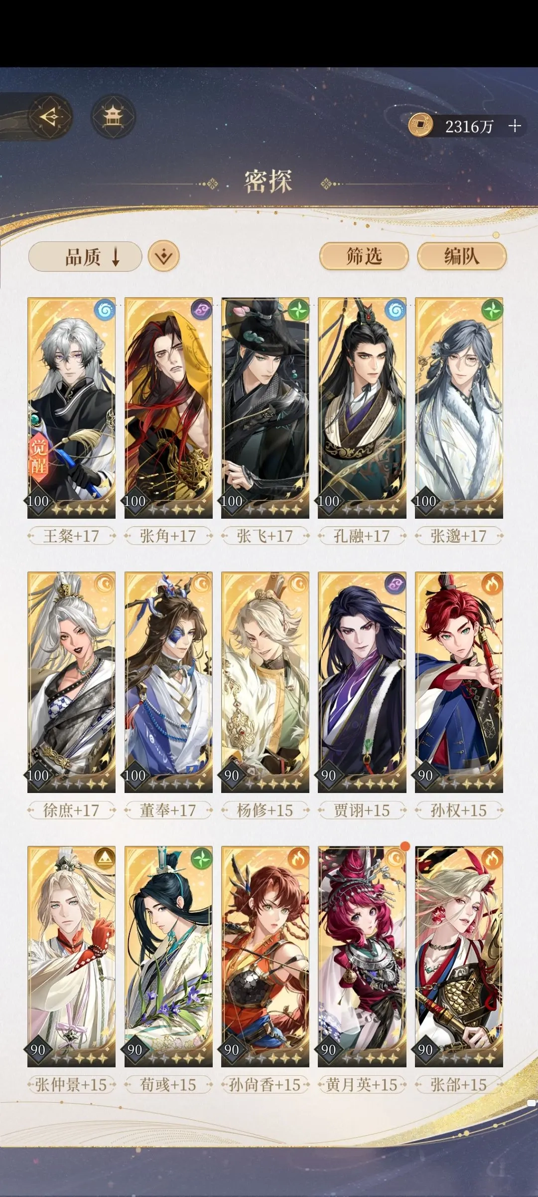 王粲一定要培养,叠星是我在据点用米换碎片来升级的,命盘选的是冷却时间减1和护盾,要是有双命盘的话可以洗出个内鬼盘。