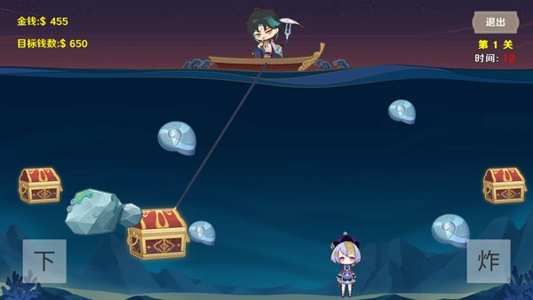 2、【玩法】基于黄金矿工的玩法,融入大量原神元素,以此提升游戏的可玩性。