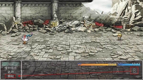 6、当进入战斗场景后,玩家只需按下右下角的B键,接着在出现的界面中选择左侧的自动按钮,即可开启自动战斗模式,从而解放双手,无需手动频繁操作。