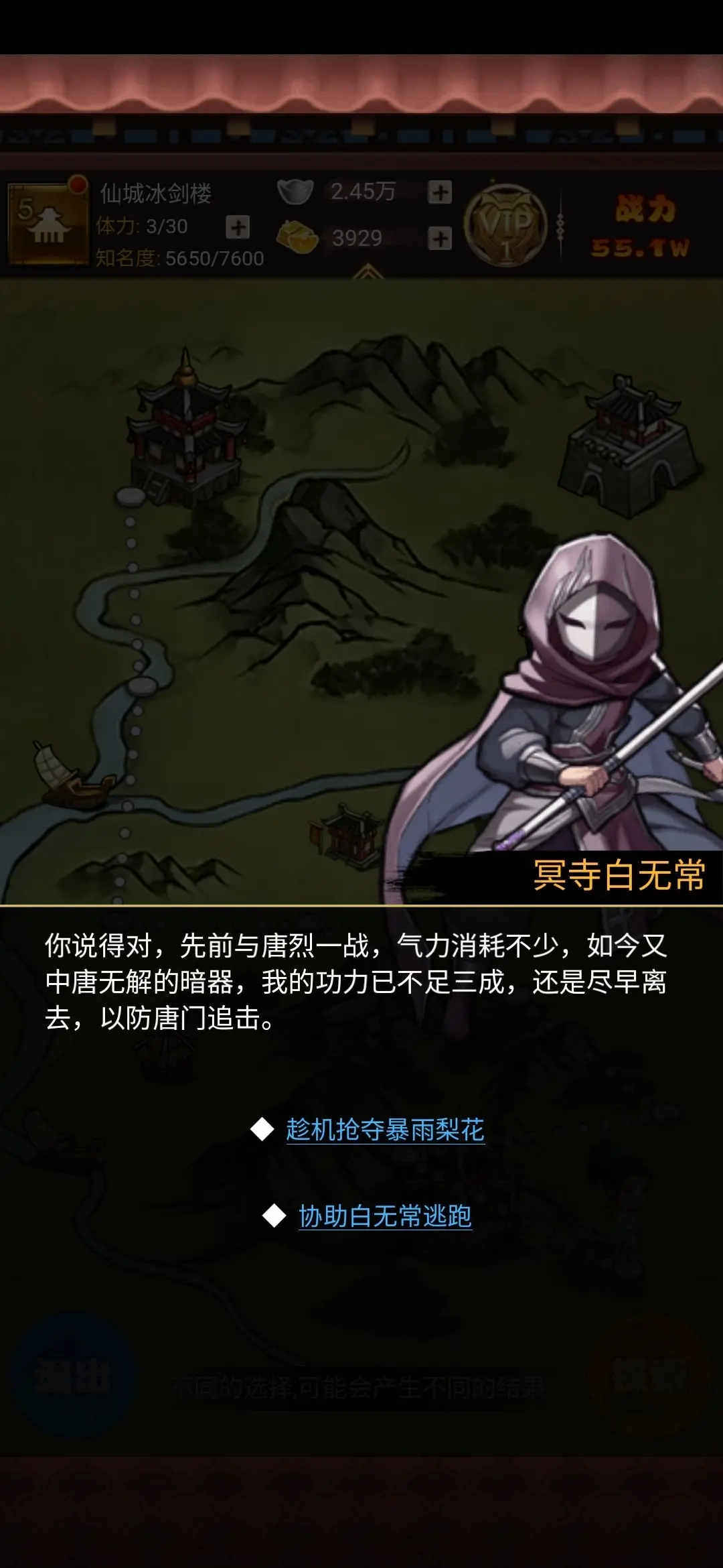 7、暴雨梨花(掉落七心海棠):正派路线:最终选择不搬救兵,而是与唐烈并肩作战;若选择搬救兵,唐烈将陷入无解之境。若战斗失败也无妨,可再次挑战,届时救兵会赶来支援。