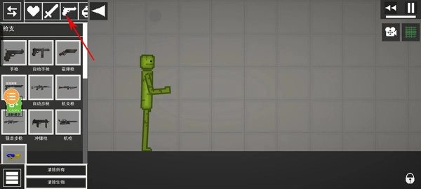 4、胳膊在空中停住后,我们要在左上角选择枪械图标来挑选枪械。