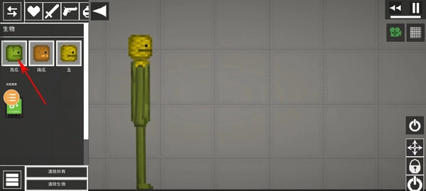 1、进入游戏后,第一步要做的是创建一个生物人。具体操作是在界面左上角找到爱心图标并点击,接着从西瓜、南瓜、玉这几个选项中挑选一个作为生物人。