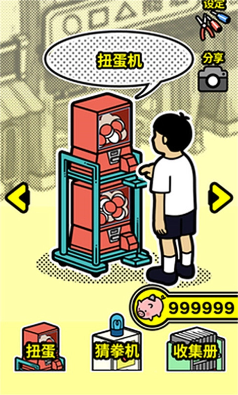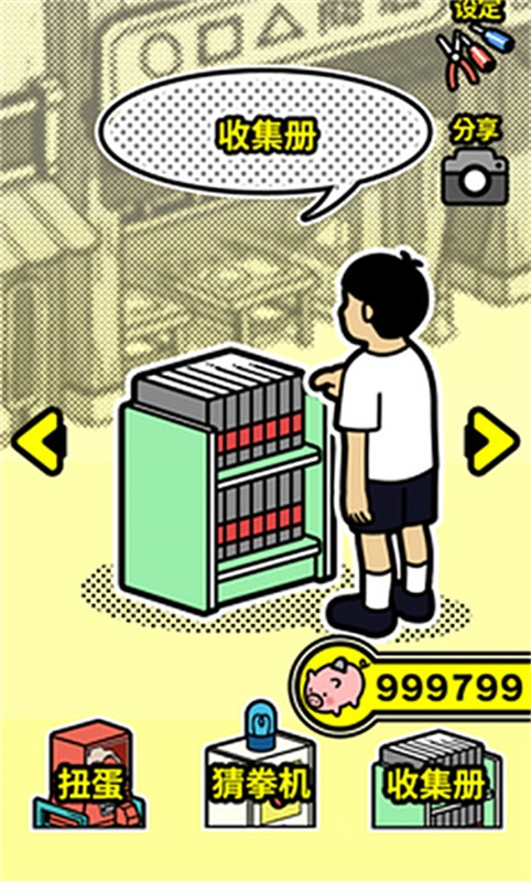 扭扭童年收集册游戏中你可以通过猜拳的方式不断地获得扭蛋,收集并且将其存在柜子中吧,当你想要回忆的时候就打开它。