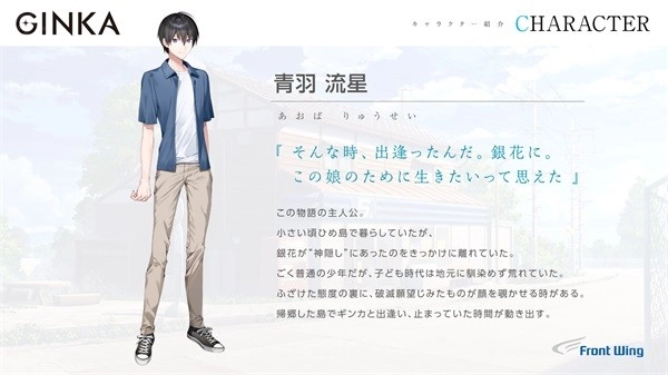 游戏的主人公。儿时曾在姬之岛上生活过一段时间,但自从银花遭遇神隐之后,他便搬离了姬之岛。现在的他只是一名平平无奇的少年,但在儿时,他曾因无法融入姬岛而品行不端,以恶作剧为乐。玩世不恭的外表下隐藏着自暴自弃的人生观,他偶尔会表现出这样的一面。重返姬之岛后,他遇到了Ginka,停滞的时间再次开始流动。