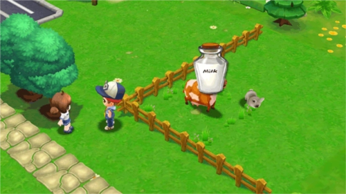 2、玩家可以在这片土地上治疗猪仔,挤牛奶,烤蛋糕等等一系列的给你为你选择,收获转来的金币可以用来开耕更多的田园。