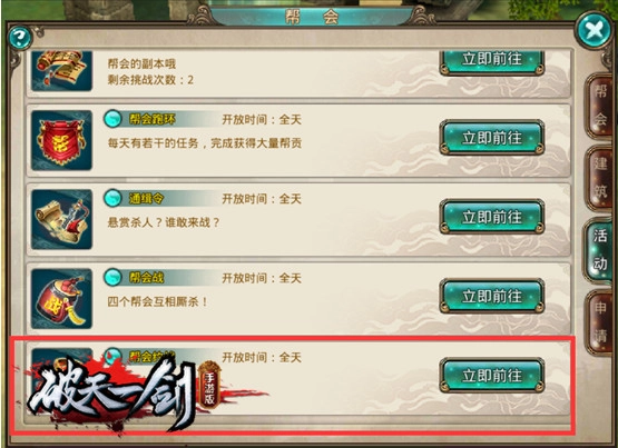 若帮主或副帮主向其他帮会挑起挑战,待对方帮主或副帮主应战之后,双方帮会成员就能在规定时间内于野外展开PK,无需开启“杀”模式。此时,攻击与被攻击的目标仅限定为发起挑战或接受挑战的帮会成员,不会对其他玩家进行攻击。而且,击杀对方成员后不会增加恶值。