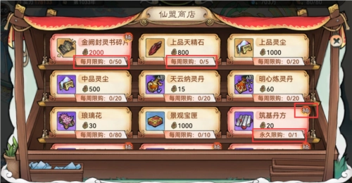 仙盟商店内的商品兑换需要消耗【仙盟功勋】,每种商品的刷新时效也有所不同