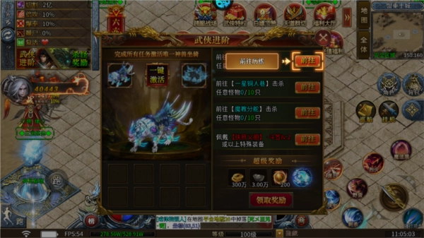 4、选择前往历练,完成所有任务可以获得神兽坐骑。