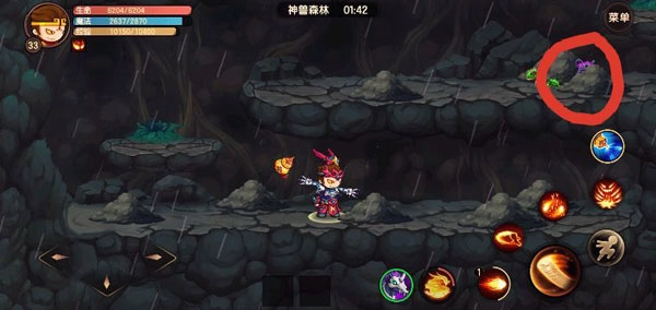 6、应对方式:使用烈焰闪,只要远离扇形区域即可。有时候鹏魔王会在非常靠上的位置释放该技能,此时只需向下移动,无需依靠技能躲避。