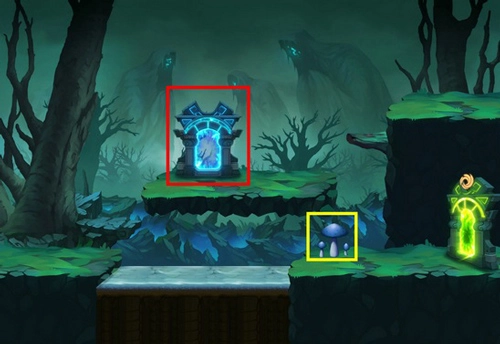 注意事项:其中间有1个捕蝇草,左边存在1个蘑菇。在两边位置会随机出现1个蓝门