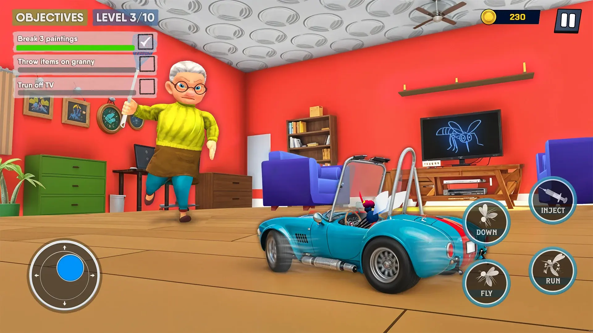 《蚊子大战老奶奶》这款游戏,是一款3D昆虫模拟类游戏,里面满是混乱与令人捧腹的元素。玩家在游戏里会摇身一变,成为一只堪称终极害虫的蚊子,开启一场和人类之间的诙谐较量。在这个极具挑战性的房屋生存模拟世界中,你要做的不只是发出嗡嗡声、去叮咬人类,还得躲开老奶奶的追捕,并且完成一连串的捣蛋任务。
