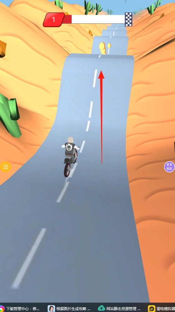 1. 踏入沙漠赛道,操纵角色顺着箭头所指的坡道骑行,开启爬坡挑战。