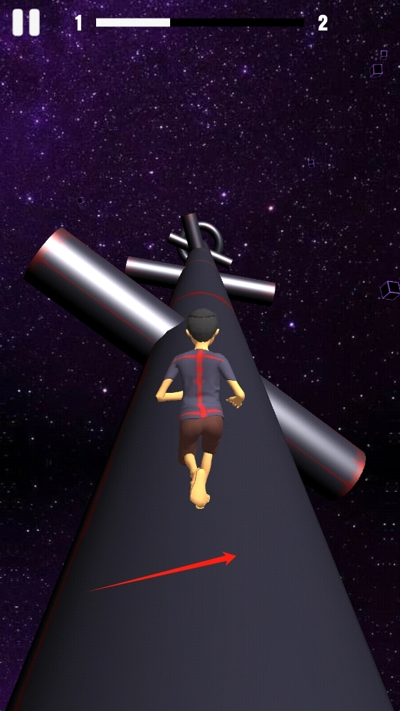 2、在游戏里,灵活操控角色在太空管道上奔跑,要留意躲避障碍,同时关注关卡进度。