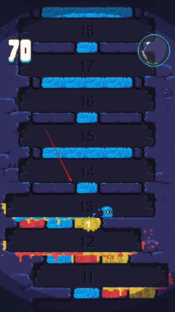 2、持续向上可获得双倍加分,越靠上方的方块构造越复杂。箭头所指的方块会不断开合,其可跳跃部分的大小会不停变化,需把握好时机。