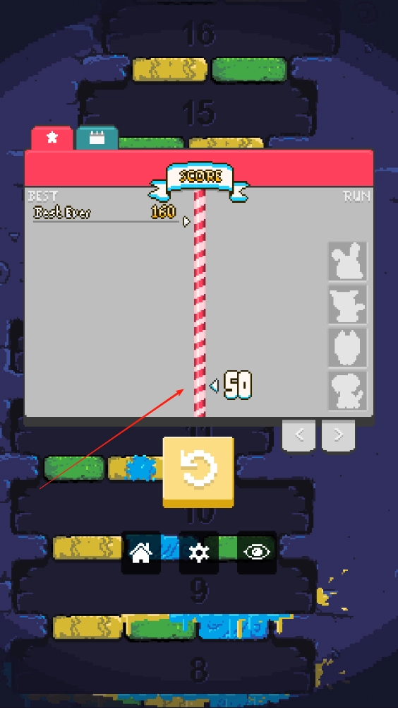 3、失误后将维持最高记录,并会提示与自身最高记录的差距。当达到特定高度时,可获取小幽灵皮肤。