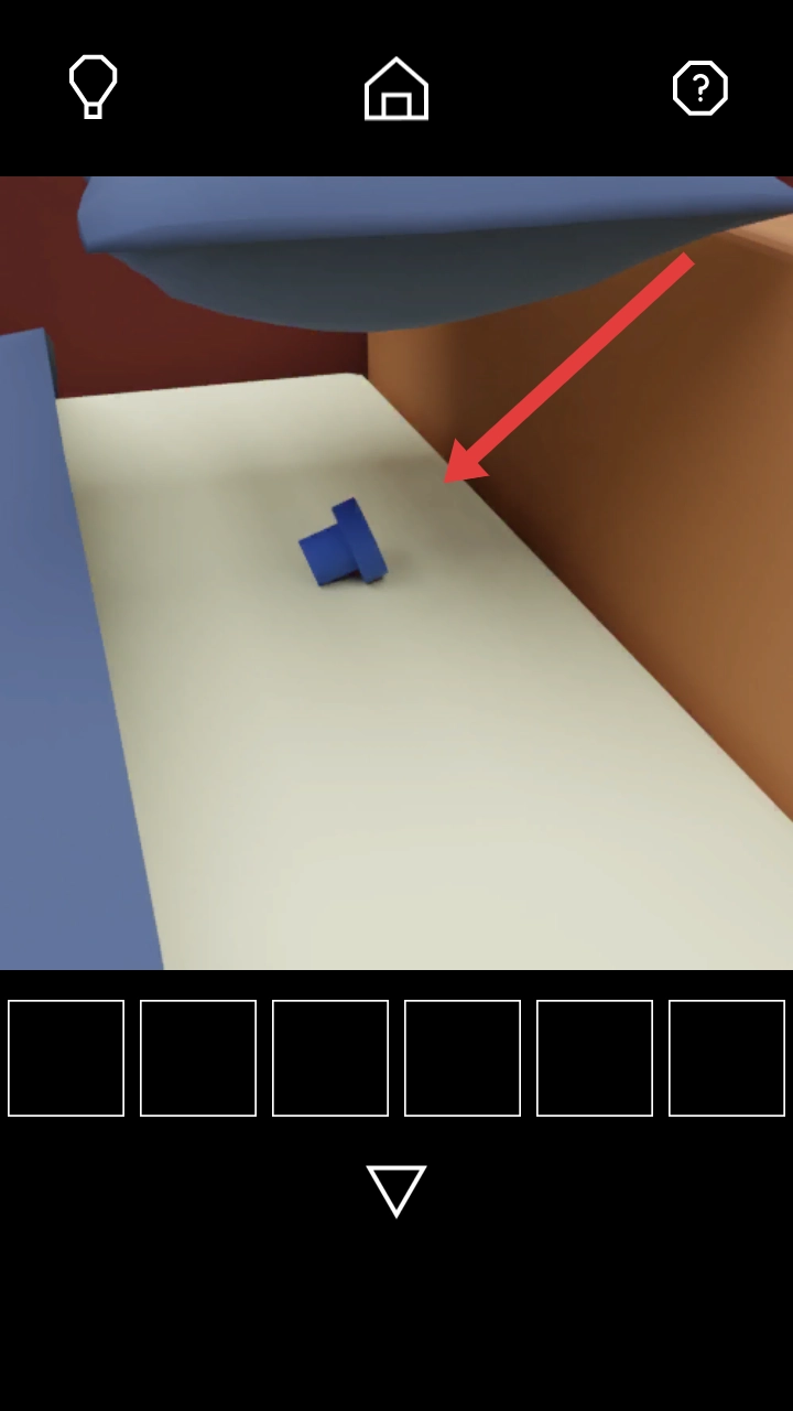 1. 若要进入房间场景,需点击藏在场景中枕头底下的蓝色小把手,然后将其收纳到下方的物品栏。