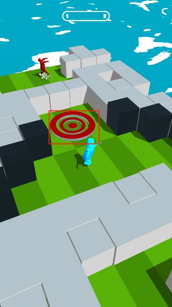 2、指引蓝色小人朝着红色靶心区域行进,在此过程中,要躲避红色敌人的攻击,借助迷宫墙体进行遮挡,以快速到达靶心,从而完成目标。