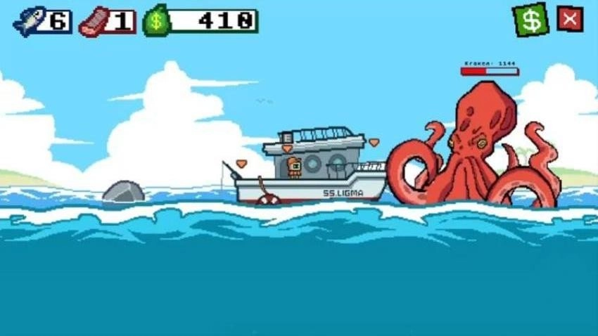 2、游戏里出现了一只大章鱼,玩家既能够驾驶自己的渔船躲避它的攻击,也能够选择与章鱼展开战斗。
