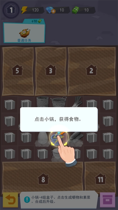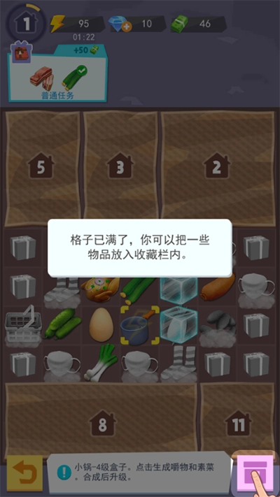 2、开启主线任务,点击对应物品获取食物,把食物收集至任务食物框内,同种食物可合成更高级的。